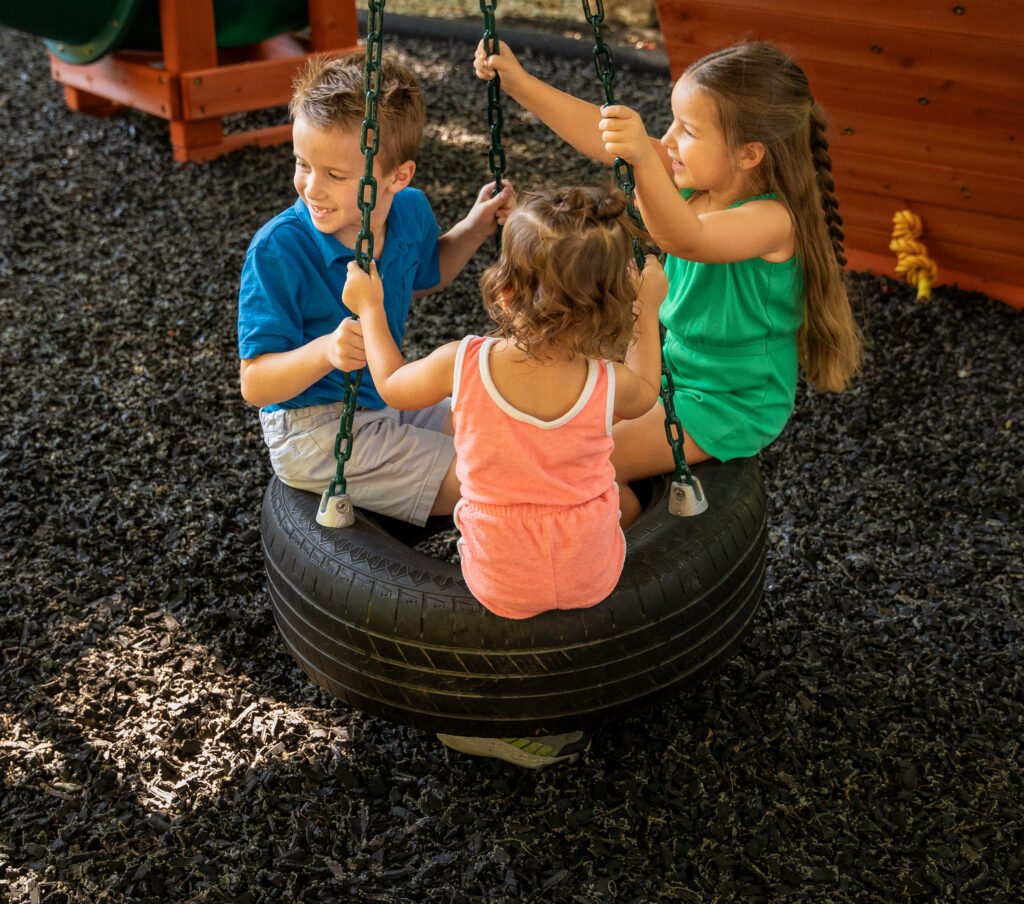 Upgrade your backyard play area with rubber mulch from Playground World—a safe, durable, and low-maintenance surfacing solution designed for active kids. Our premium rubber mulch provides superior shock absorption to help protect against falls, while staying clean, dry, and splinter-free year-round. Unlike traditional wood mulch, it won’t break down, fade, or attract bugs. With vibrant color options and long-lasting performance, it’s the perfect way to keep your playset area looking great and your children playing safely. Trust Playground World for the best in playset safety and outdoor fun.