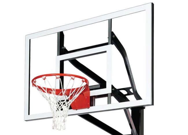 36”x54” Glass, 5” Pole, Heavy Duty Breakaway Rim, Internal Height Adjustment