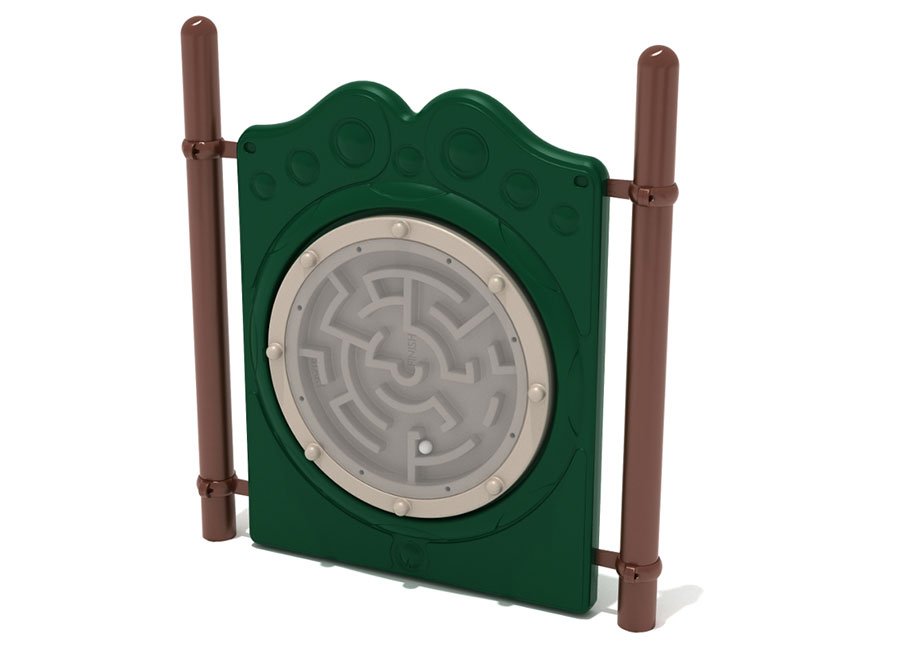 Enhance your playground’s Tree House series with the Tree House Ball Maze Panel, a freestanding activity panel that challenges kids to guide a hidden ball through a maze by rotating the front wheel. With a charming wood-grain plank design, this panel encourages fine motor skills, problem-solving, and patience—all while fitting seamlessly into jungle, nautical, or woodland playground themes. Ideal for Ohio schools, parks, and daycare centers, it requires no safety zone, is ADA-ground level compatible, and meets ASTM and CPSC playground standards.