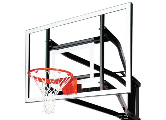 38”x60” Glass, 6” Pole, Heavy Duty Breakaway Rim, Internal Height Adjustment