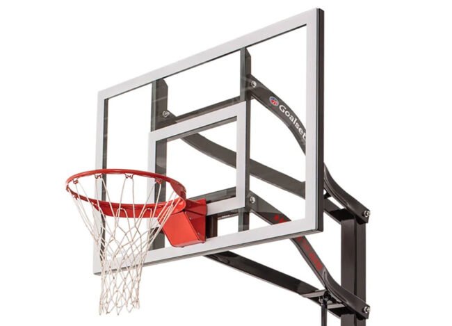 36”x54” Glass, 4” Pole, Heavy Duty Breakaway Rim, Internal Height Adjustment