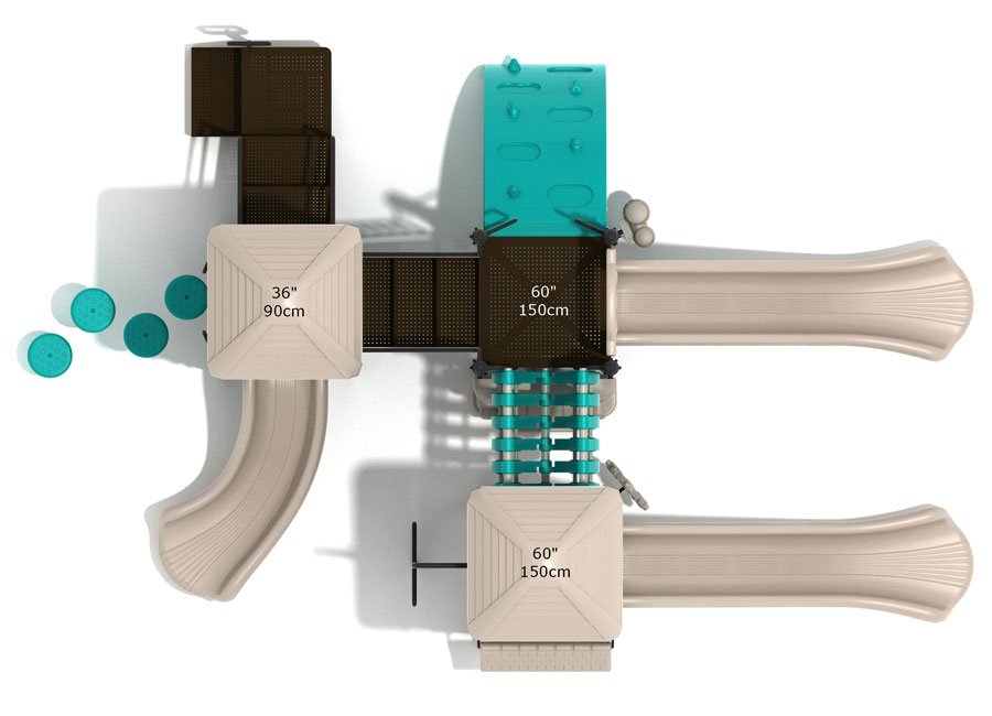 Slides 2× 5 ft straight slides; 1× 3 ft turn slide