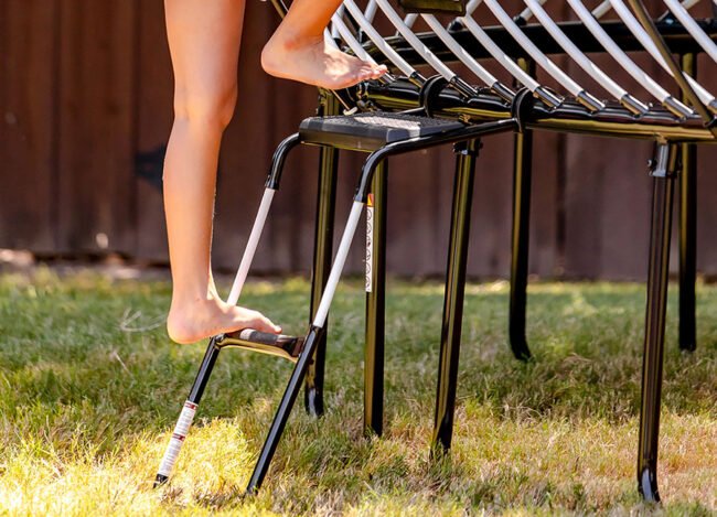 Make getting on and off your trampoline safe and simple with the Springfree FlexrStep Ladder. Designed specifically for Springfree Trampolines, this flexible step system provides easier access without adding any hard surfaces near the jumping area—keeping your bounce zone safe. The adjustable design fits three different trampoline heights and includes a convenient lock to help prevent unsupervised play. Built tough and backed by a 1-year manufacturer’s warranty.