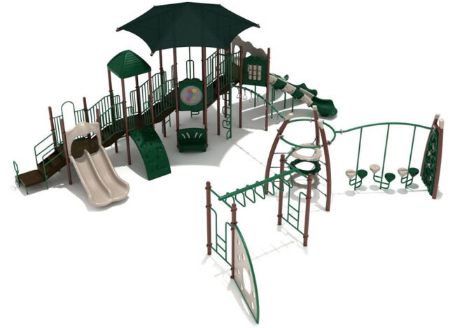 Climbing Features Sea Creature, Jungle, Curved Panel, Net, Lotus climbers; rope, loop, tower of rings ladders