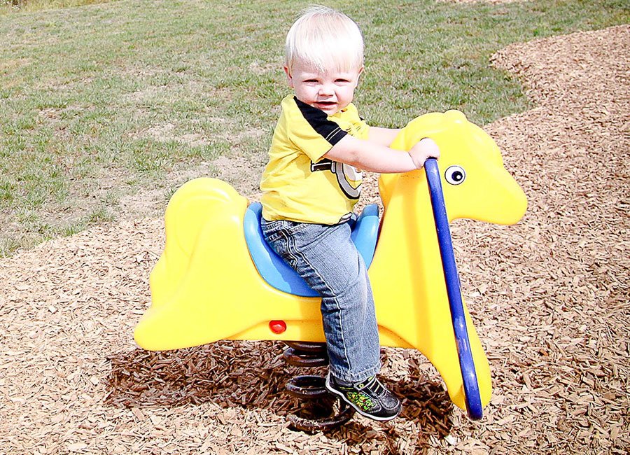 Structure Rotomolded plastic pony; powder-coated galvanized steel base & coil spring