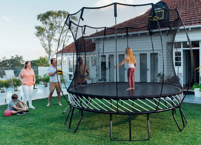 A backyard classic, perfect for medium-sized yards! With 79 sq. ft. of bounce space—equal to a 12ft spring trampoline—this mid-size model offers safe, high-performance fun for kids and adults alike.