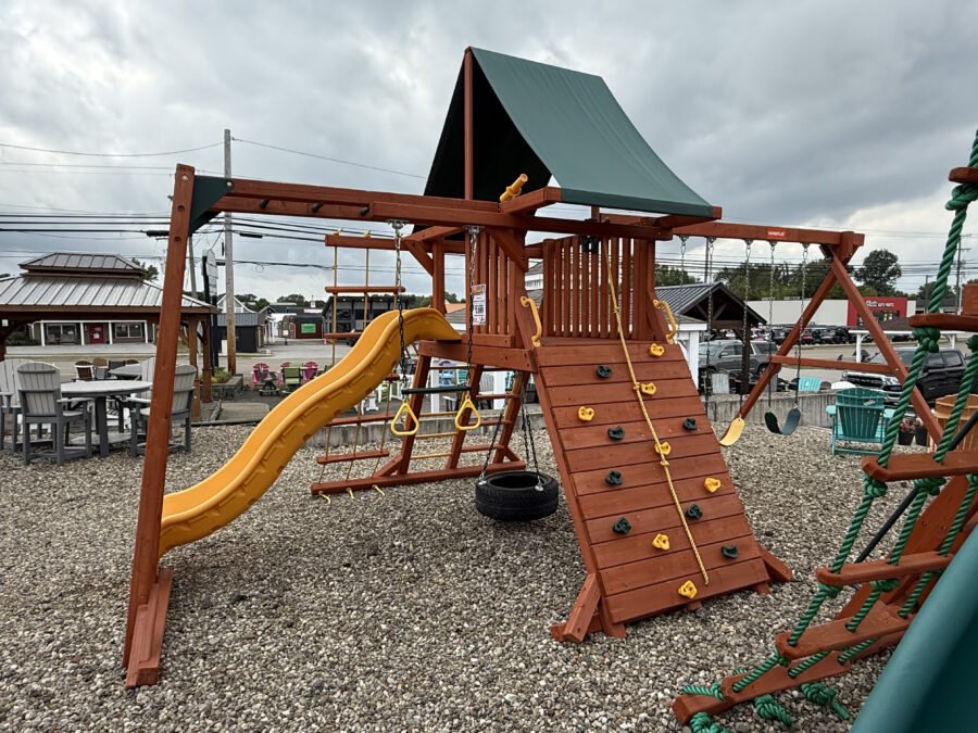 Save $1,249 on this Lion’s Den (Pg. 63) Woodplay playset with green vinyl canopy, monkey climber, green/yellow rocks, yellow wave slide. Sale price includes installation and delivery within our service territory. Limited supplies! Located in Harville, OH.