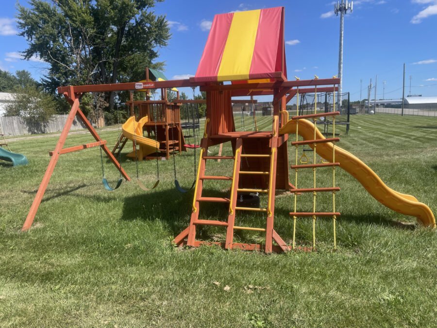 Save $1,320 on this Lion’s Den (Pg. 63) Woodplay playset with red/yellow vinyl canopy, red/yellow rocks and yellow wave slide. Sale price includes installation and delivery within our service territory. Limited supplies! Located in Columbus, OH.