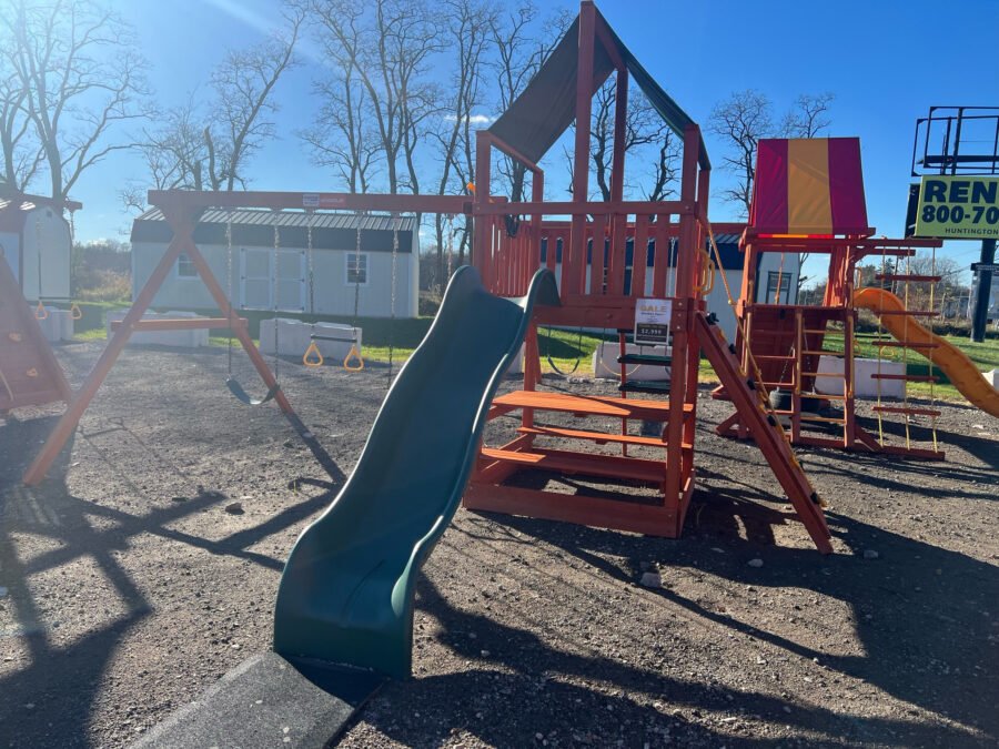 Save $1,015 on this Monkey Tower (Pg. 56) Woodplay playset with green vinyl canopy, green/yellow rocks, and green wave slide. Sale price includes installation and delivery within our service territory. Limited supplies! Located in Damascus, OH.