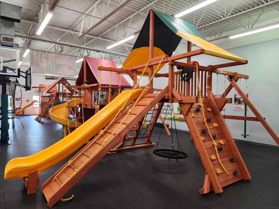 Save $1,593 on this Outback 6 Combo 2 (Pg. 19) Woodplay playset with red vinyl canopy, red/yellow rocks, yellow alpine slide, yellow bubble pannel, and air pogo xtreme swing. Sale price includes installation and delivery within our service territory. Limited supplies! Located in Avon, OH.