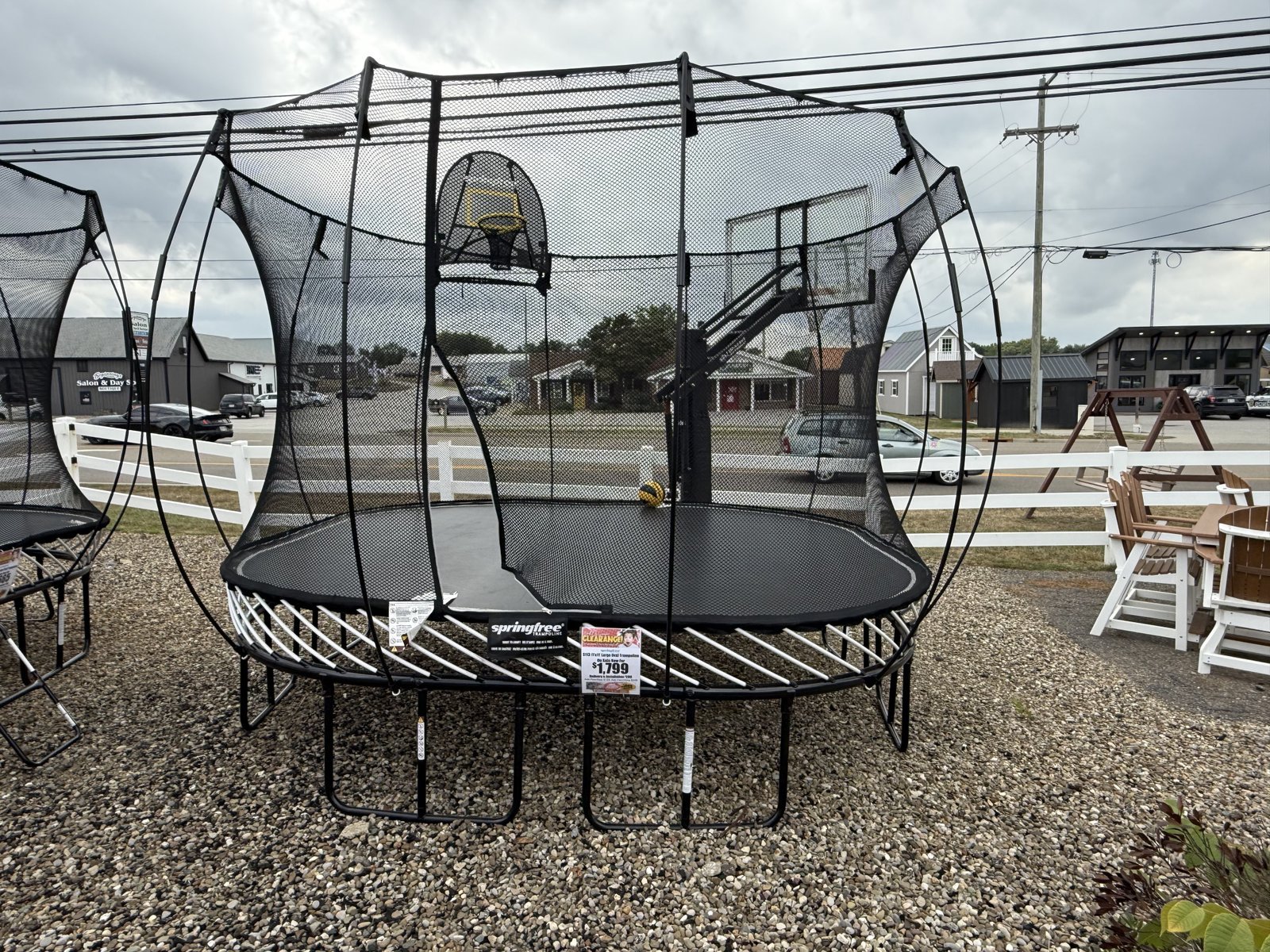 Save $978 on this S113 11′ x 11′ Large Square Springfree trampoline with ladder, hoop, and ball. Sale price includes installation and delivery within our service territory. Limited supplies! Located in Harville, OH.