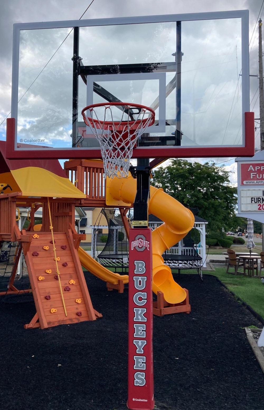 Save $1,098 on this Signature Series MVP Goalsetter basketball hoop with red backboard edgepad and OSU pole pad. Sale price includes installation and delivery within our service territory. Limited supplies! Located in Canfield, OH.
