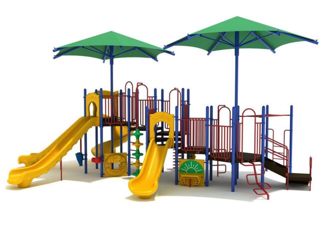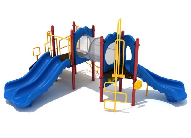 Materials Powder-coated steel posts; roto-molded HDPE slides and panels; PVC-coated decks