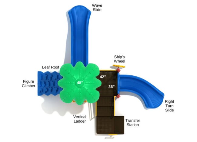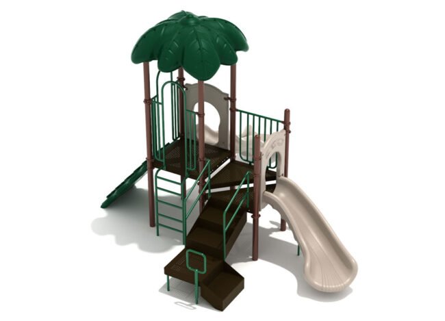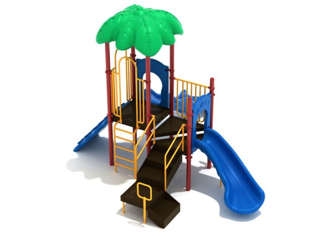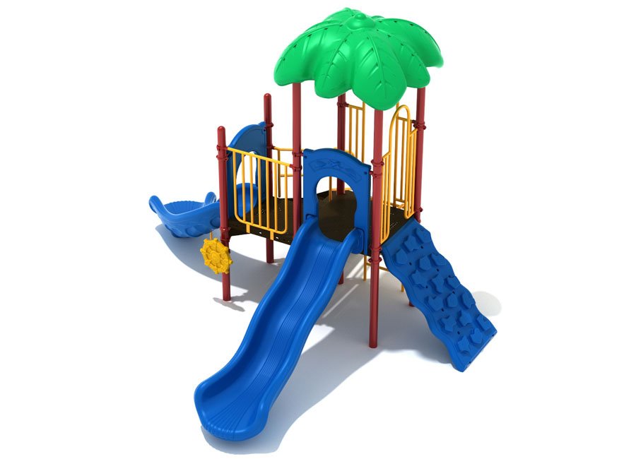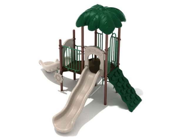 Bring tropical fun to your playground with the Village Greens structure—designed for adventurous kids ages 2–12. This island-themed playset features a leafy roof, a thrilling Wave Slide, a curvy Right Turn Slide, and a challenging Figure Climber with multiple handholds for active exploration. A Ship’s Wheel sparks imaginative sailing adventures, while durable plastic and galvanized steel ensure long-lasting performance in any Ohio weather. Perfect for schools, parks, and community play areas seeking a unique, high-quality play solution.