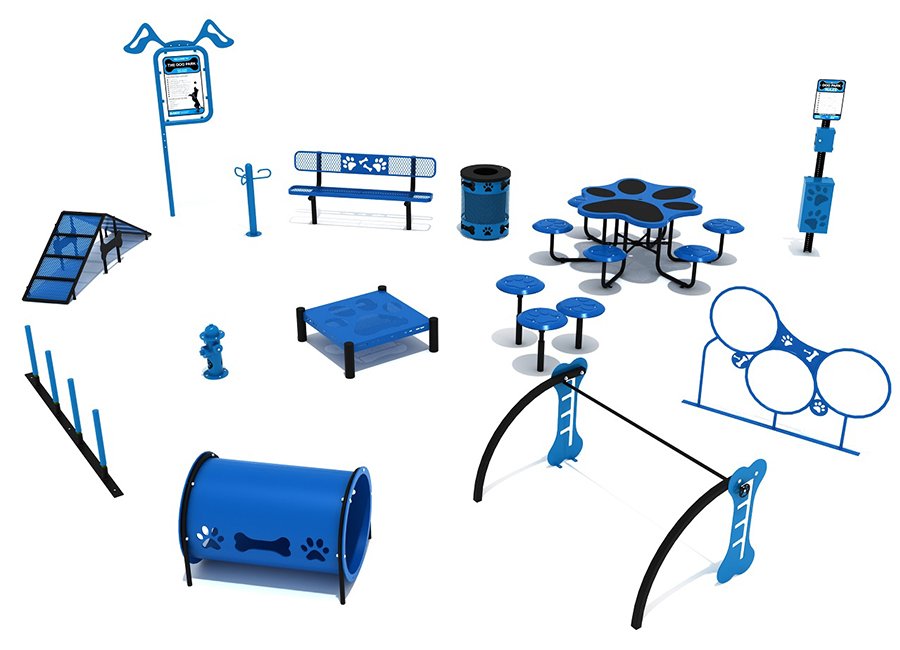 Pieces Included 14-piece kit (agility ramps, tunnel, bench, jump bar, weave, fire hydrant, hoop jump, paw-step, etc.)
