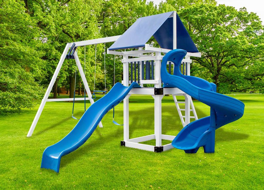 The Weaver Vinyl High Rider Playset brings elevated adventure to your backyard with a spacious 26′ x 22′ layout. Featuring tall towers, exciting slides, swings, and climbing features, this durable, low-maintenance vinyl playset is built for high-energy fun and long-lasting outdoor play.