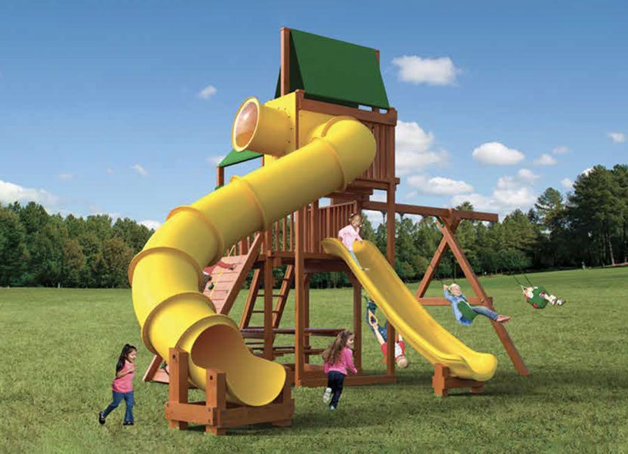 Creativity abounds with this Woodplay Playhouse series playset. This square-based swing set offers classic backyard fun and encourages both active and creative play. As one of our best swing sets, this Playhouse model is great for younger kids and smaller yards, but don’t let its size deceive you. With room for three swings, two climbers, two slides, and plenty of accessories, this playset grows with your kids for long-lasting 0kno fun. Like all Woodplay wooden playsets, the Playhouse 6’ swing set is fully customizable, and has extra room for you to add even more accessories.