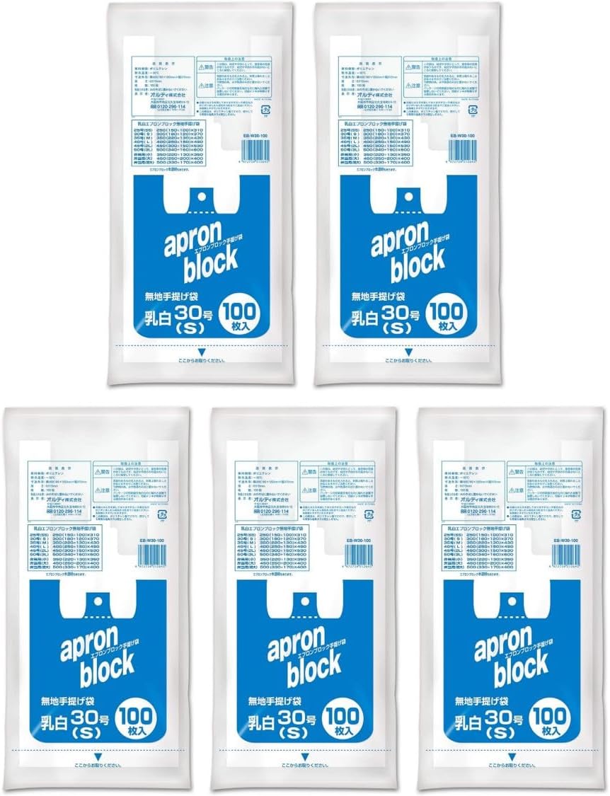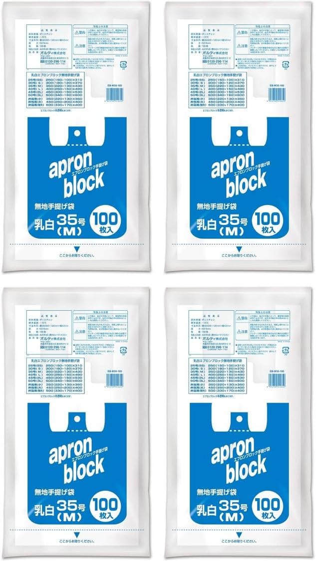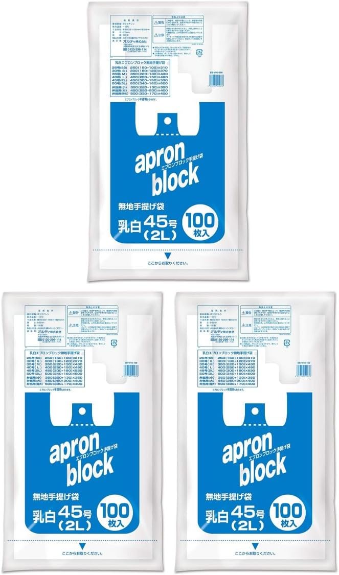 Ordi EB-W50-100 Shopping Bags, No. 50, 0.8 gal (3 L), Milky White, 100 Pieces, Set of 2, Convenience Store Bags, Takeout, Handle Included, Plastic Bag, Apron Block